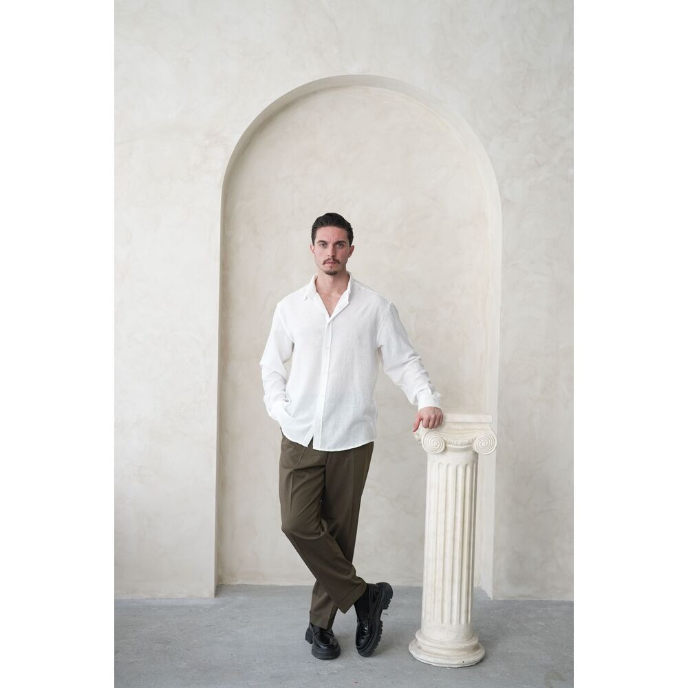 Hafif dokusu ve salaş kesimi ile gün boyu konfor sunarken, zarif görünümüyle stilinizi bir üst seviyeye taşır. İster günlük kombinlerde, ister smart casual tarzlarda rahatlıkla tercih edilebilir.