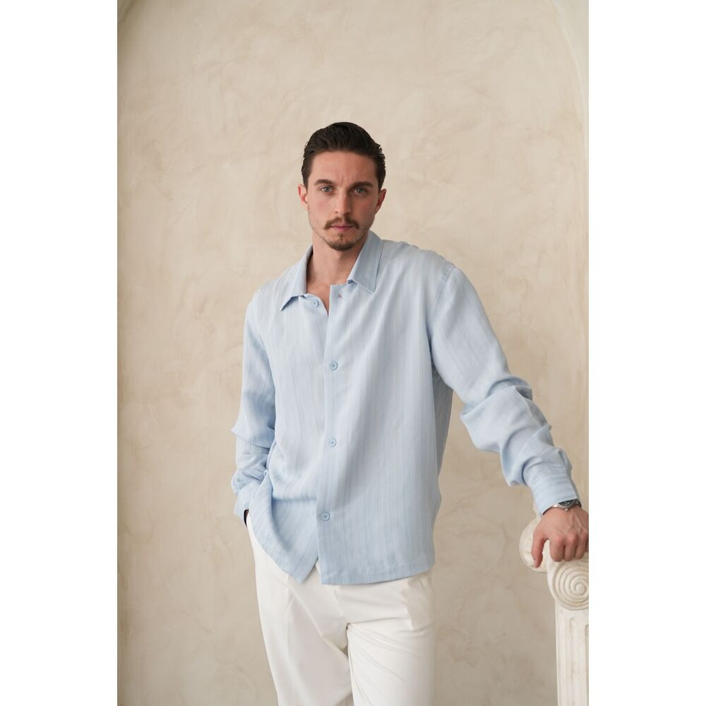 Rahat Kalıp Açık Mavi Dokulu Erkek Gömlek