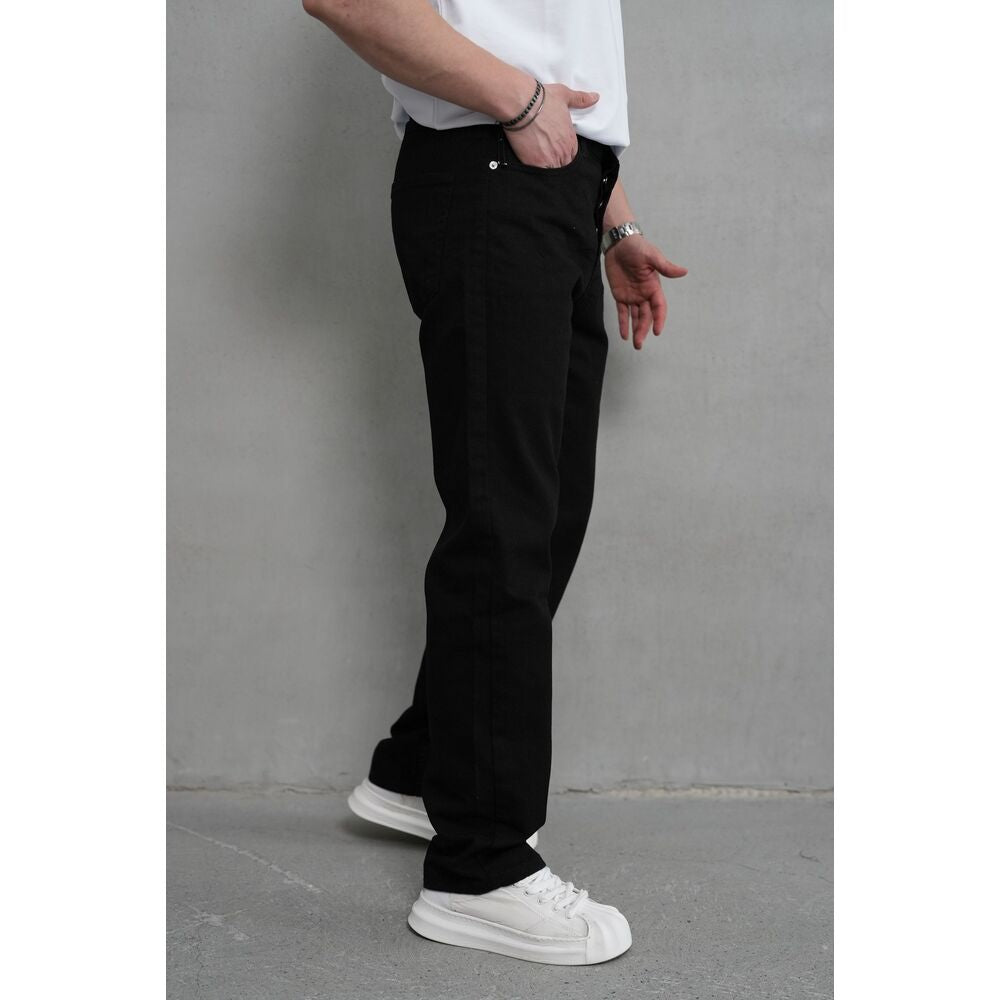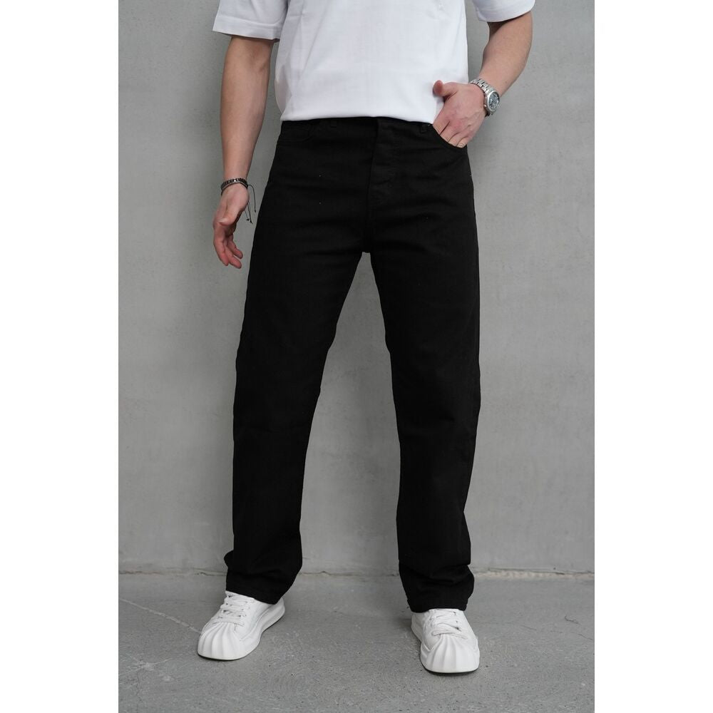 Siyah Rahat Kalıp Düz Paça Erkek Denim Pantolon