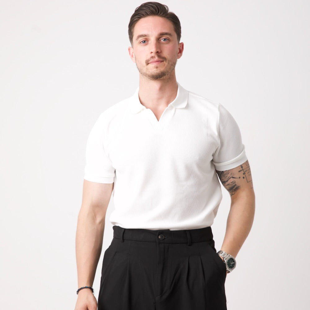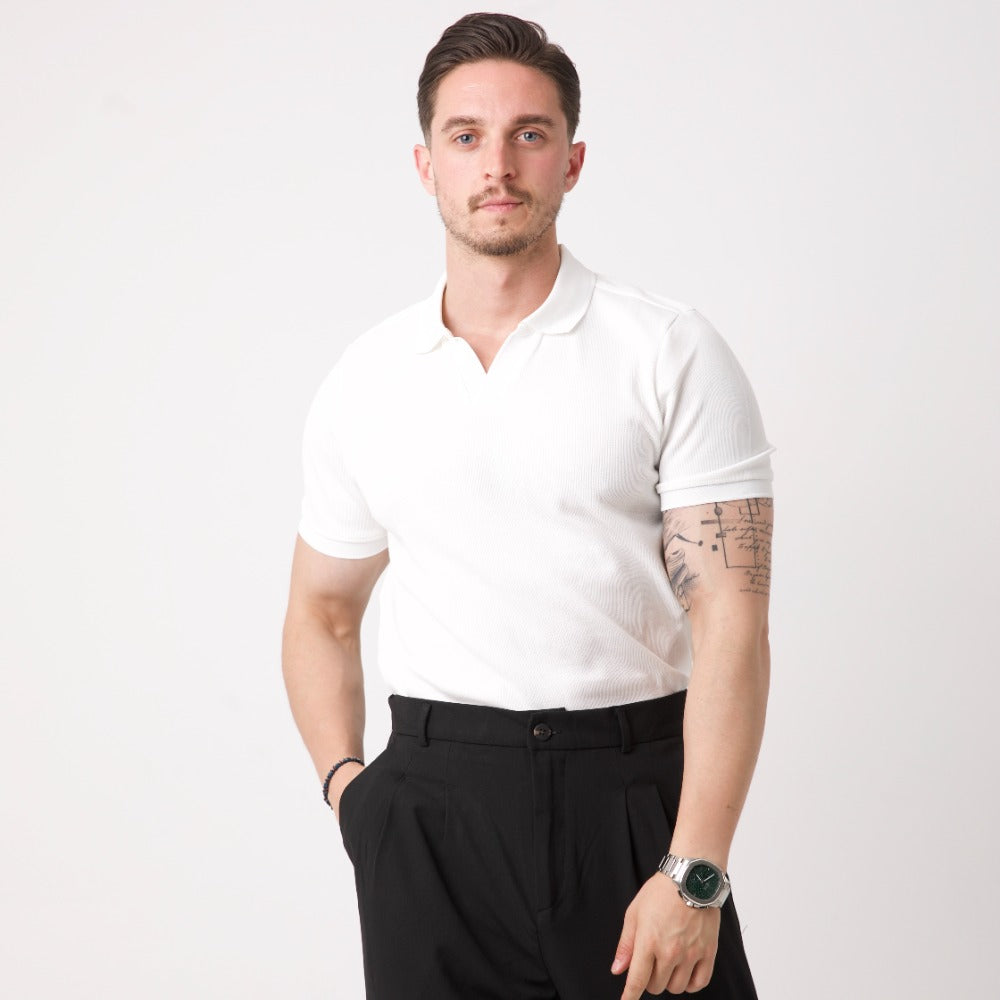 Beyaz Düğmesiz Polo Yaka Triko Tişört